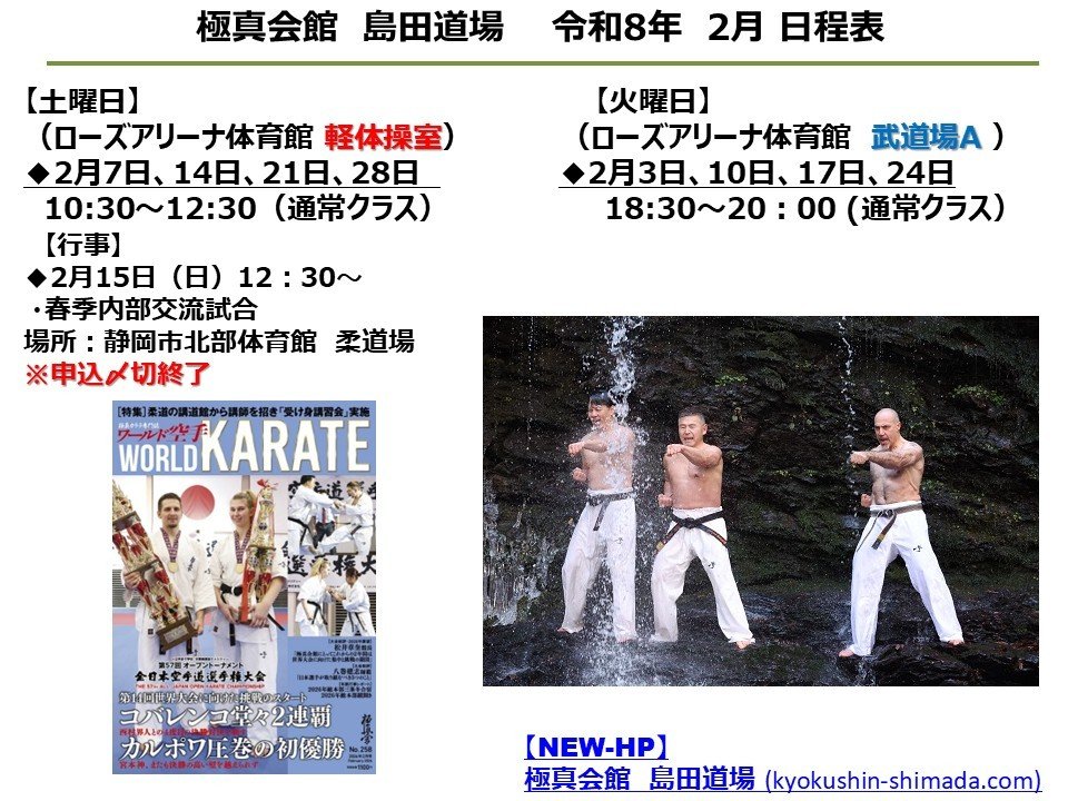 寒さが厳しい2月は、心と体を鍛える絶好の季節です。基本を丁寧に積み重ね、技の精度と体力の土台をしっかり作っていきましょう。